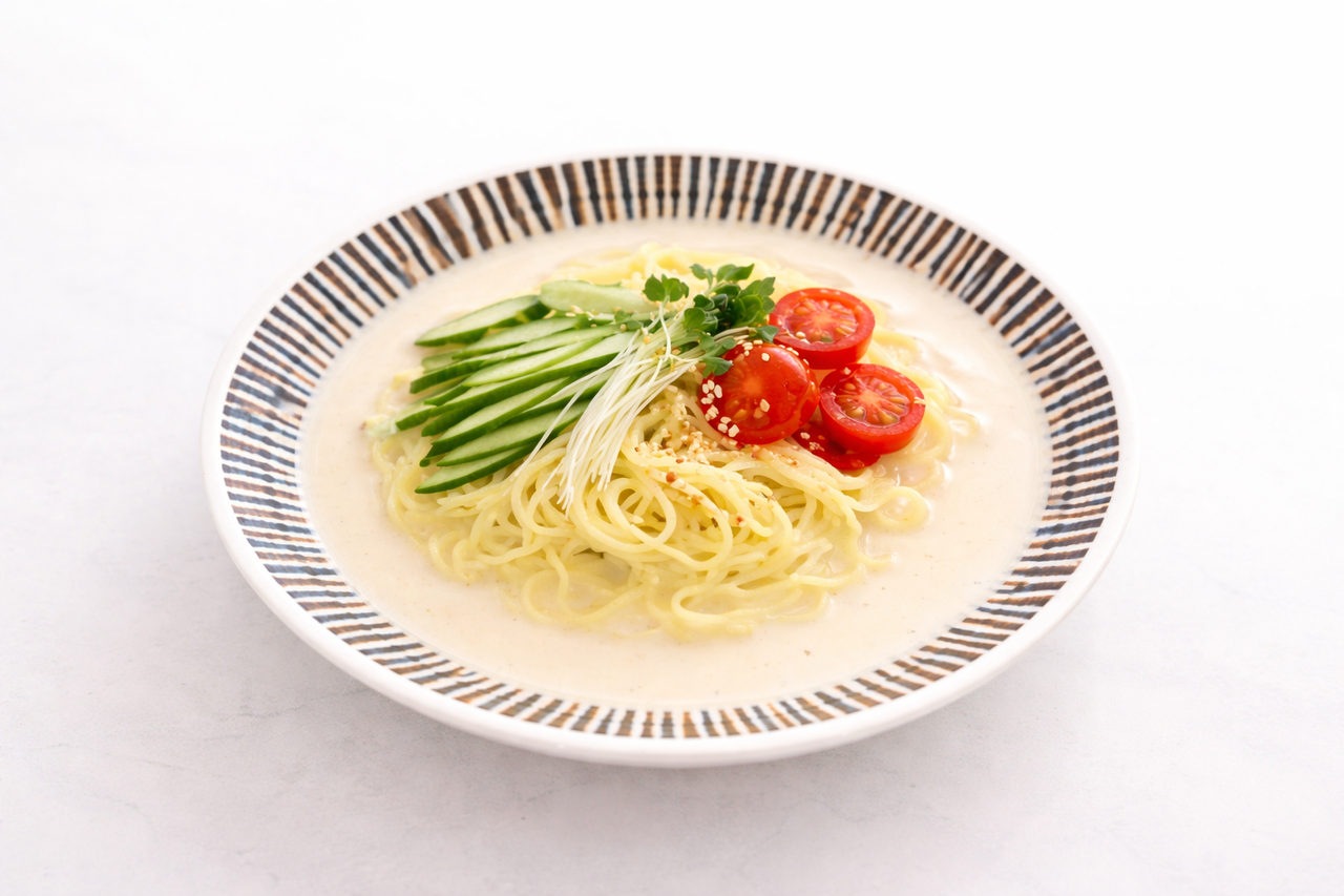 콩국수분말 1kg : 물 860ml - 물에 콩국수분말을 넣고 섞어 콩국물을 만든후 삶은 소면에 부어 배 식합니다.