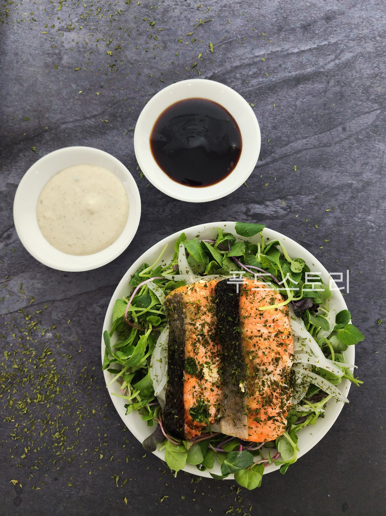 - 마늘톡톡눈꽃치즈연어60g + 어니언타르타르소스12g