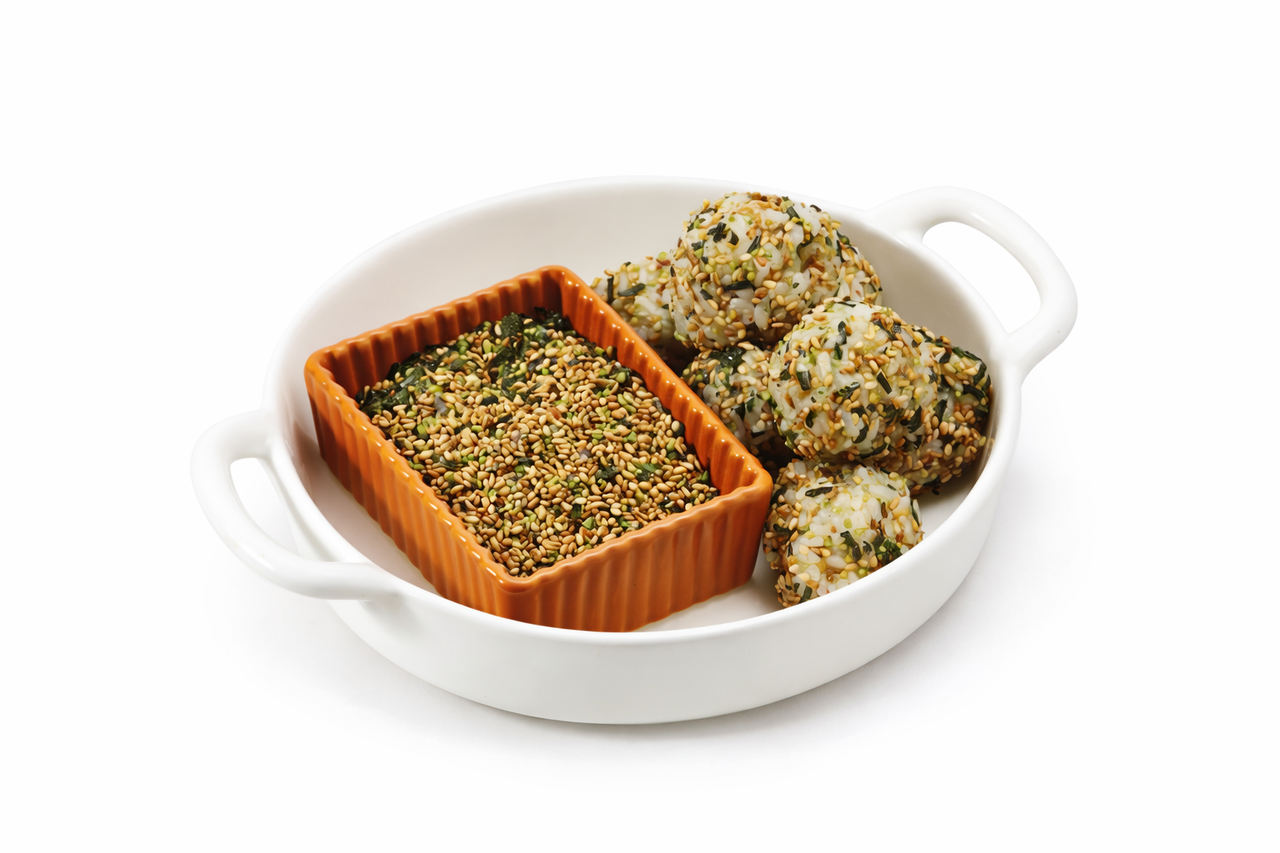 구운김후레이크(김/국내산100%), 파래분말(파래/국내산100%), 곡류가공품 (미숫가루, 보리, 찹쌀, 대두, 밀, 땅콩함유), 가쓰오후리가케(볶은참깨)