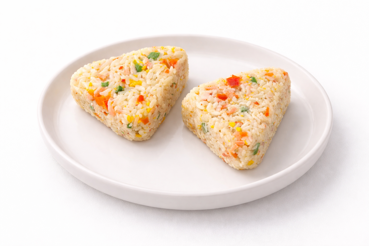 쌀(국내산)53.676%, 게맛살채9.9%, 양파, 당근, 스크램블애그 홍파프리카, 그린빈, 찹쌀, 붉은대게살1.23%