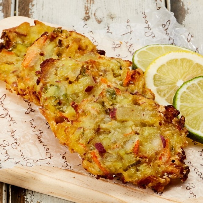 고구마(국산)27.18%, 우엉채15.53%, 양파(국산)23.3%, 옥수수전분, 튀김가루, 부추, 당근