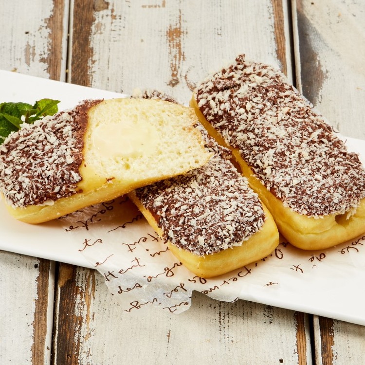 50g우리밀5%, 도넛가루프리믹스50.2%, 정제수, 초코렛12.4%, 바바리안필링, 빵가루1.8%