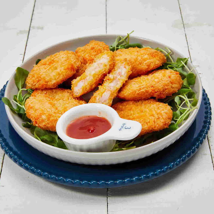 새우38%(절단새우34%, 다진새우4%), 황색빵가루, 백색빵가루, 베타믹스