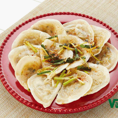 당면(고구마전분100%,중국산)27.8%, 밀가루(미국,캐나다,호주)20.9%, 돼지고기(국내산)10.4%, 부추, 양배추, 양파, 간장, 대두단백, 전분, 백설탕, 쌀가루, 마늘, 생강, 대두분말, 후추, 정제염 외