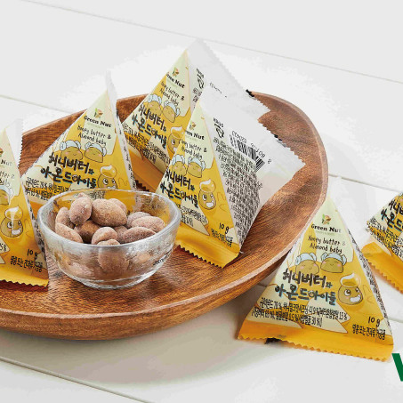 구운아몬드[아몬드/미국]78%, 허니밀크맛시즈닝-디9%[버터혼합분말15%(가공버터65%), 전지분유(원유:국산), 벌꿀분말0.5%(국산/사양벌꿀30%)]