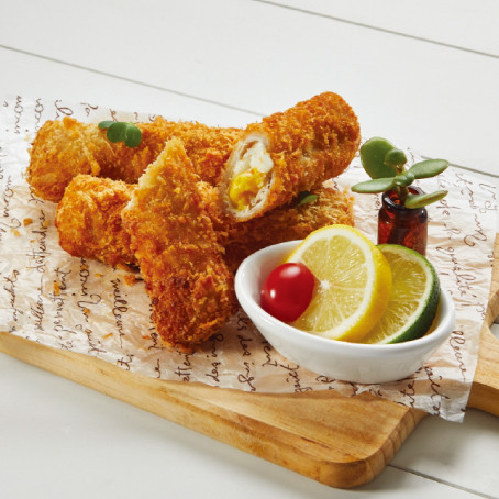 돼지고기(등심/국내산)50.2%, 고구마스트링14.6%[증숙고구마(중국산), 자연치즈(외국산)], 크림앤체다스트링치즈15.2%, 스위트크림치즈30%, 식빵가루, 베타믹스